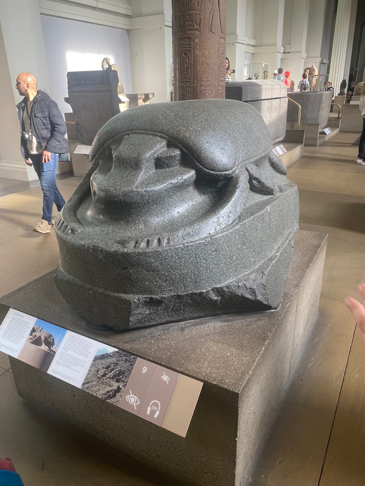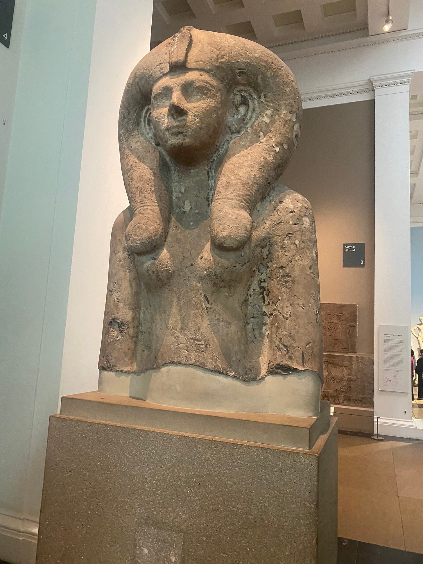 Whilst writing this weeks missive I was listening to the ‘Leading’ Podcast where the sculptor Anthony Gormley was being interviewed by Rory Stewart and Alistair Campbell. I knew nothing of Gormley and was overwhelmed by his responses and insight. He is also another devoted meditator. Toward the beginning Anthony Gormley mentions how visiting the Egyptian antiquities as a boy his artistic imagination was fuelled, how could it not? I include a picture I took at the British Museum last month, can you identify the goddess? The link to the podcast is below if you would like to listen: